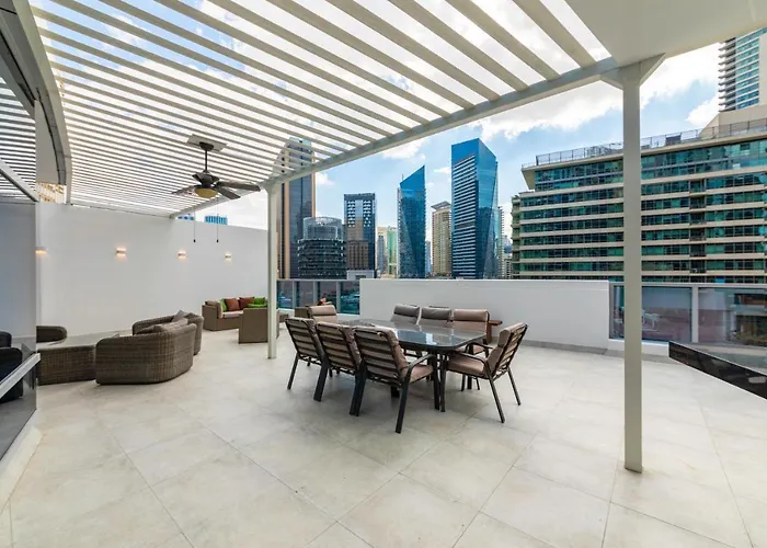 Mit einem Swimmingpool und 3 Schlafzimmern ausgestattet, befindet sich diese Villa im Stadtviertel Dubai Marina. Die Villa ist 900 Meter von der U-Bahn-Station Jumeirah Lake Towers und 5 Gehminuten von der Bushaltestelle Big Boat tour start entfernt.